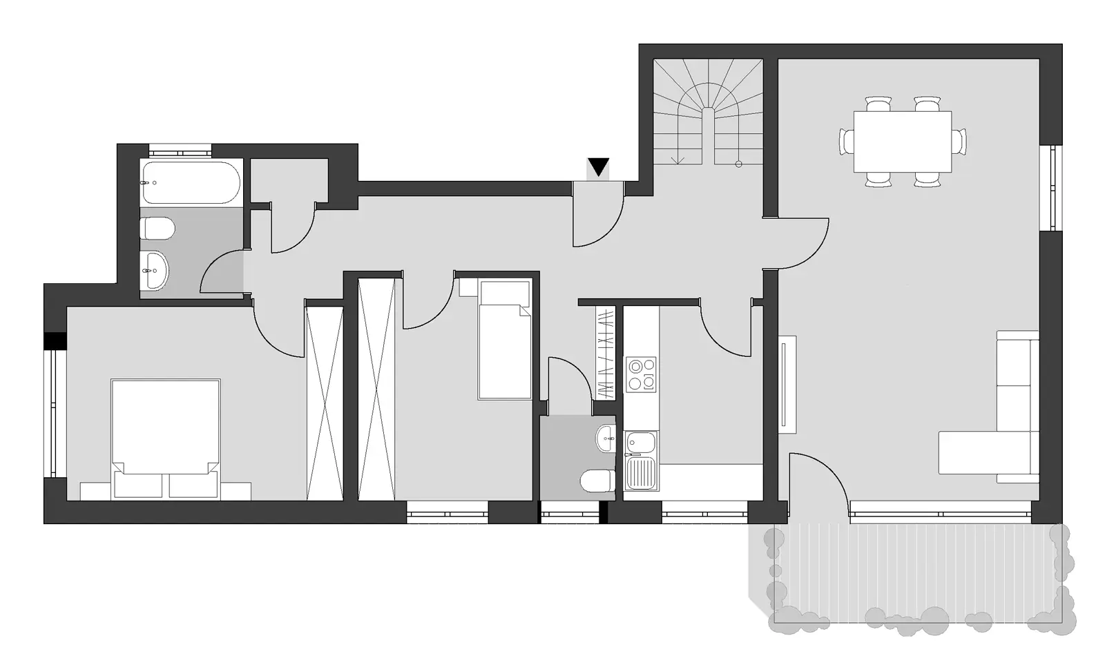Insbesondere das zweiseitig belichtete Wohn-Esszimmer ist großzügig und perfekt zu möblieren.